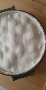 Recouvrez avec la pâte feuilletée et rentrez bien les bords.